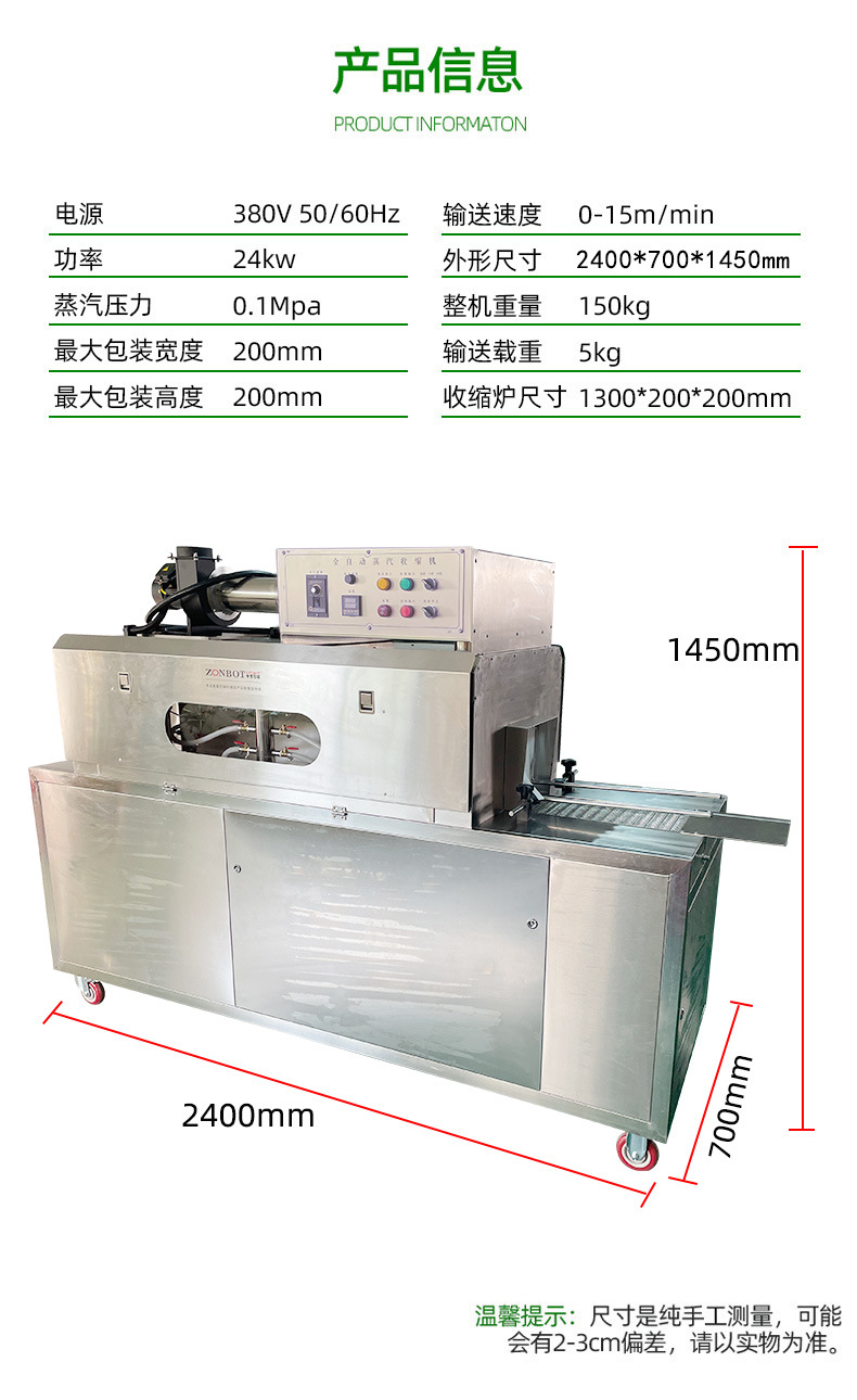 - 環保節能:在適當的操作條件下,蒸汽收縮機相對比較節能。而且蒸汽本身是一種相對清潔的熱媒,與一些化學溶劑型的包裝方式相比,對環境的污染較小。
