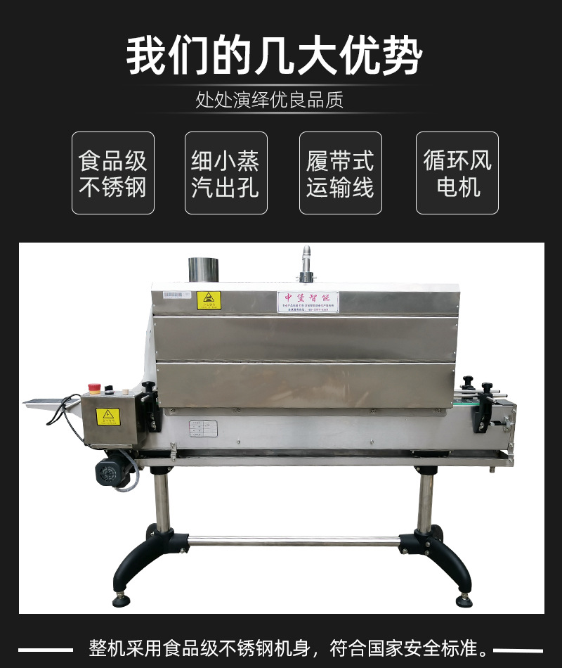 - 蒸汽的高效熱傳遞:蒸汽收縮機利用蒸汽作為熱源,蒸汽在接觸包裝材料時會發生凝結,釋放出大量的潛熱。這種潛熱的釋放使得包裝材料能夠快速吸收熱量,相比其他一些熱收縮方式(如單純的熱風收縮),熱傳遞效率更高。例如,在同等的包裝材料和產品尺寸下,蒸汽收縮機可能只需要較低的溫度和較短的時間就能達到理想的收縮效果,從而節省能源。