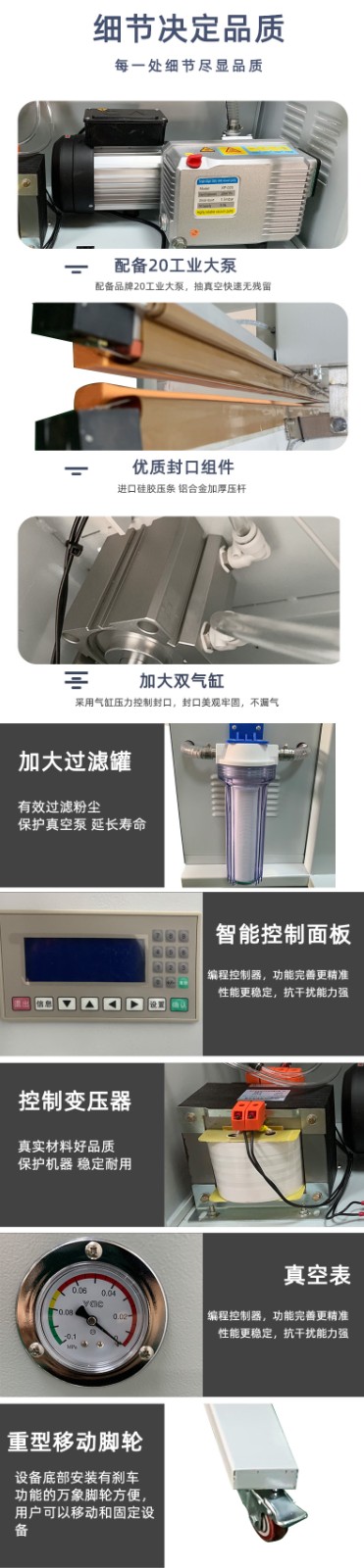 立式外抽真空包裝機抽氣不充分可能由設備本身部件、包裝材料及操作等多方面原因造成,以下是具體介紹: