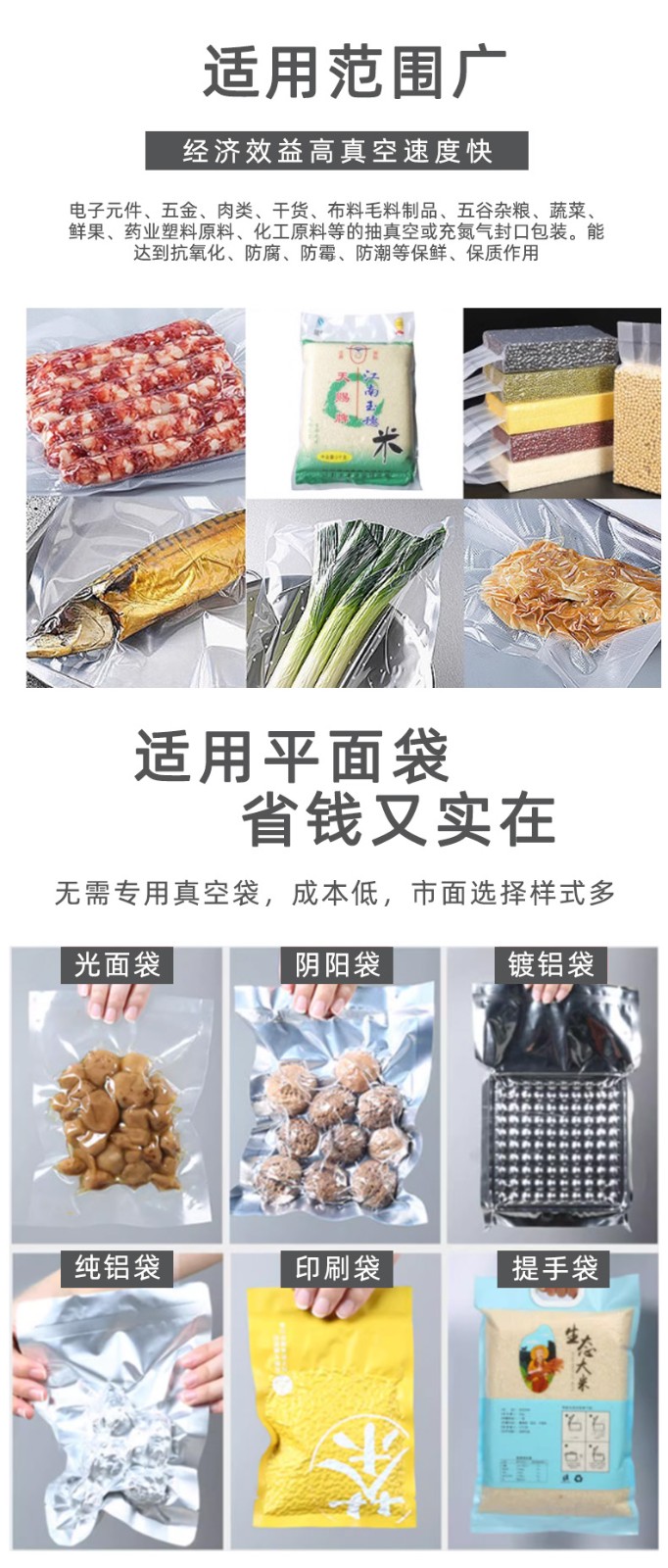 • 包裝袋材質問題:如果包裝袋材質的透氣性差或存在微小的針孔、裂縫等缺陷,會導致空氣無法順利抽出,影響抽氣效果。例如,一些質量較差的塑料包裝袋可能在生產過程中產生了微小的瑕疵,不易被肉眼察覺,但會影響真空包裝的質量。