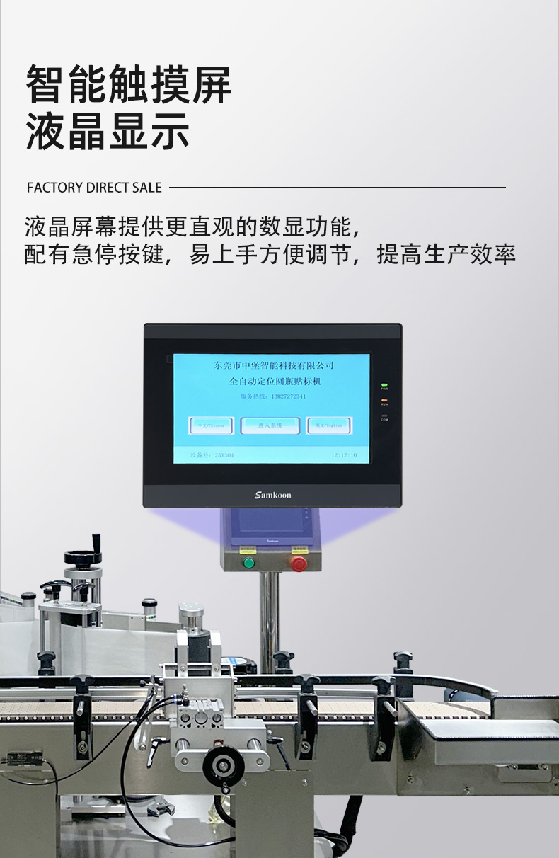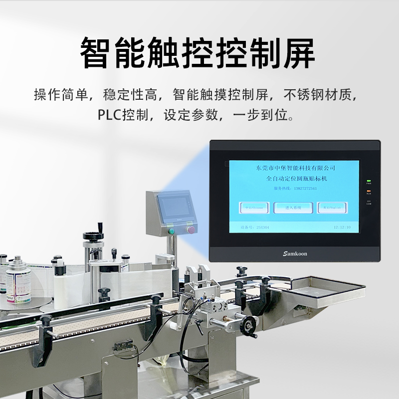 無需大量更換機械部件,即可兼容直徑 30-100mm(部分可定制)的圓瓶,支持玻璃、塑料、金屬等不同材質瓶身;同時能處理不干膠、監管碼、防偽標等多種標簽,換產時僅需在觸摸屏調整參數,10 分鐘內即可完成切換。