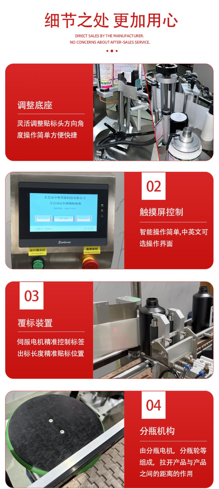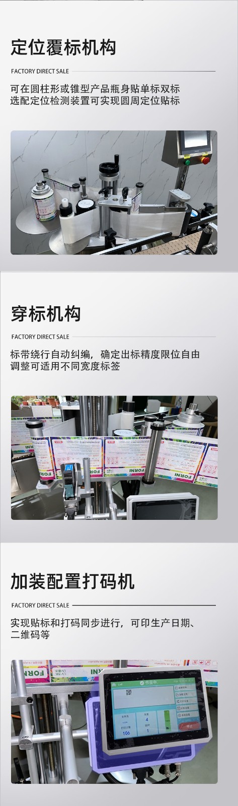 自帶 “自動分瓶、無瓶不貼標、缺標報警” 功能,無需人工分揀瓶子或監控標簽供給;部分機型還支持與前后生產線(如灌裝機、裝箱機)聯動,形成全自動化包裝流程,降低人工搬運和操作失誤的風險。