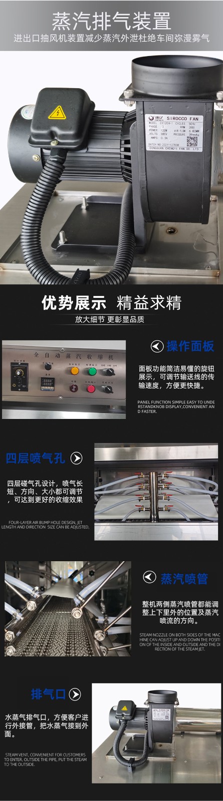 蒸汽收縮機的蒸汽能夠全方位地接觸薄膜,使薄膜各個部位受熱均勻,收縮效果一致